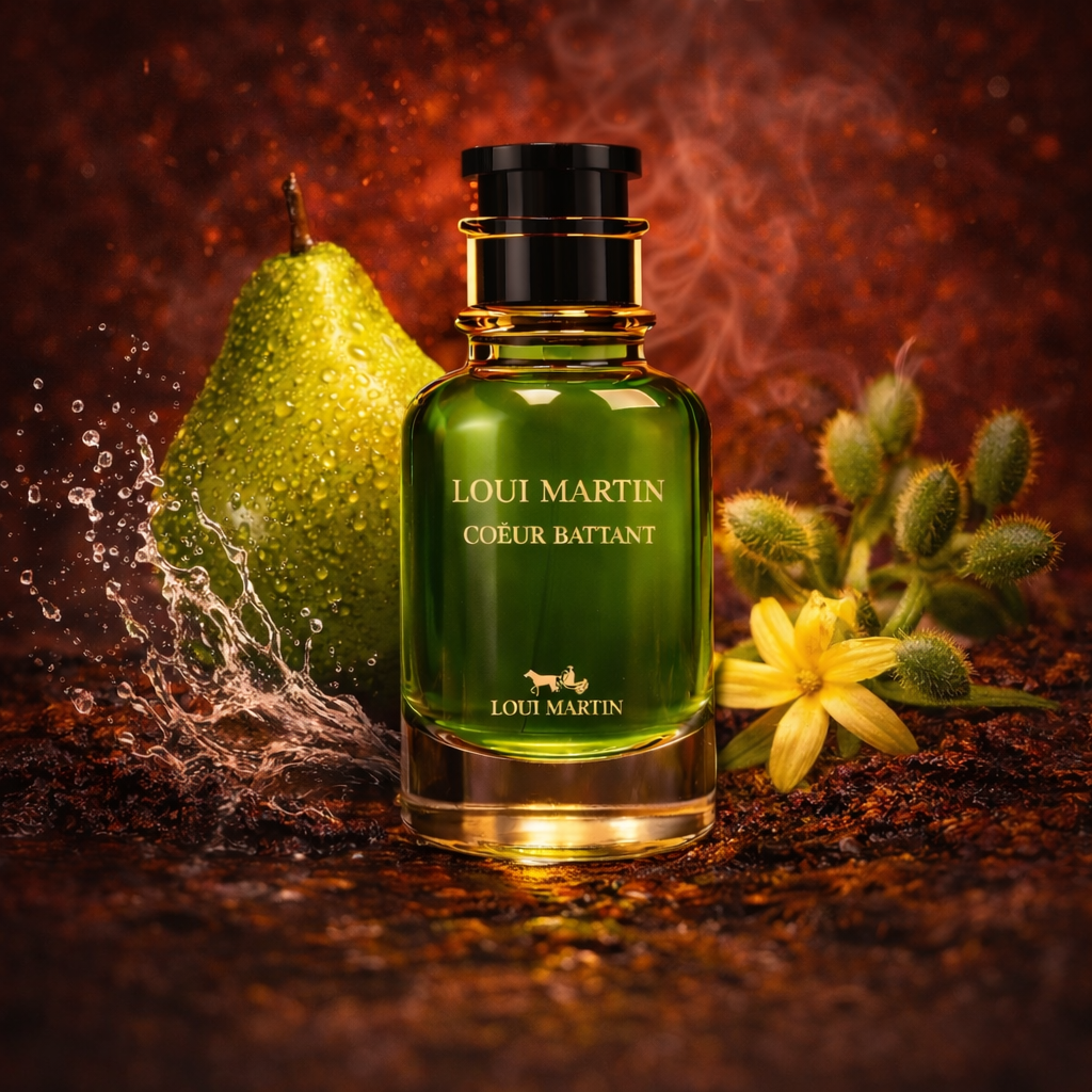 Cœur Battant est une déclaration olfactive audacieuse qui célèbre la passion et l'émotion à l'état pur. L'ouverture fraîche de poire juteuse, cascalone aérien et ambrette musquée crée une sensation vibrante et sensuelle. Le cœur floral opulent où jasmin d'Égypte, narcisse et ylang-ylang s'entrelacent devient magnétique, impossible à ignorer. Le fond de patchouli et mousse ancre cette composition dans une élégance profonde, terreuse et mémorable.